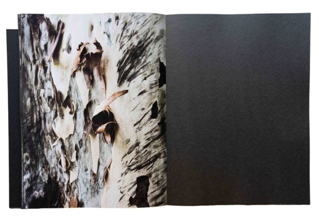 Voir les paysages statiques, silencieux, vides, constater l’absence écrasante de vie et se confronter à ce qui subsiste après le passage des méga-feux de forêts.Il ne s’agit pas de la perte matérielle, mais de l’appréhension intime de la charge émotionnelle. La complexité de la perception humaine est ici questionnée, par un mécanisme d’ajustement qui nous permet d’apprivoiser le brutal, le destructif. La façon dont nous mettons en place un procédé pour rendre supportable le Thanatos. Et notre force à aller chercher la beauté dans l’obscurité absolue.