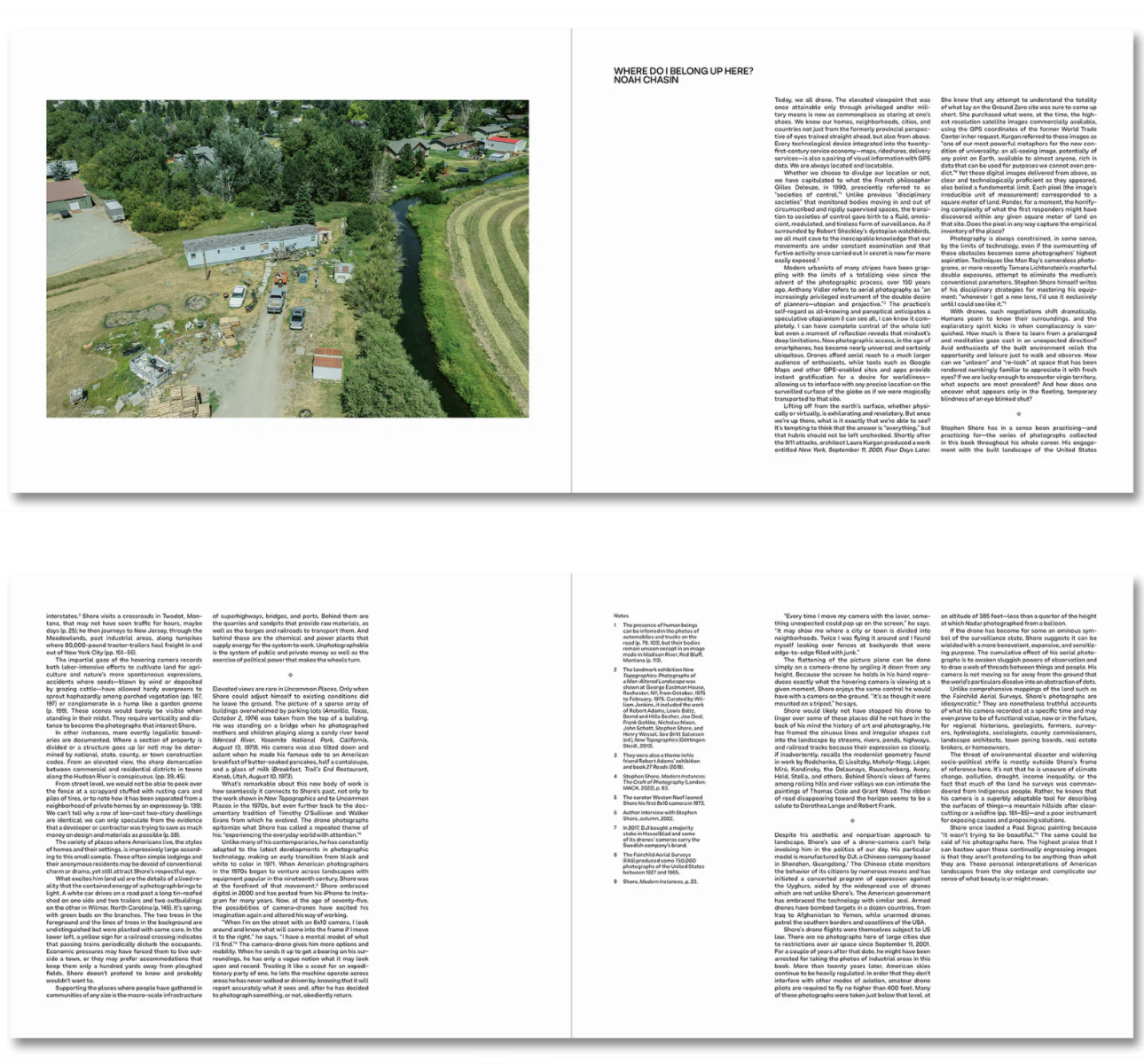 Topographies : Aerial Surveys of the American Landscape présente la dernière œuvre de Stephen Shore : une série de photographies prises avec un drone à partir de 2020, qui révèlent dans des détails saisissants l’interaction des paysages naturels et artificiels du Montana, de la Caroline du Nord, de New York et d’ailleurs.